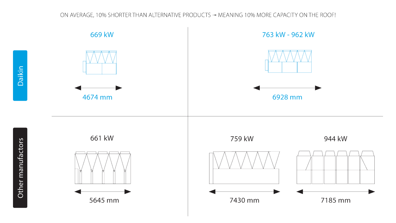 Привод Daikin VFD позволяет блоку работать оптимально, снижая и ставя под контроль эксплуатационные расходы в любых рабочих условиях. Фирменный одновинтовой компрессор интегрирован с системой переменной объемной производительности (VVR), которая изменяет степень сжатия, повышая эффективность компрессора при изменении условий окружающей среды.